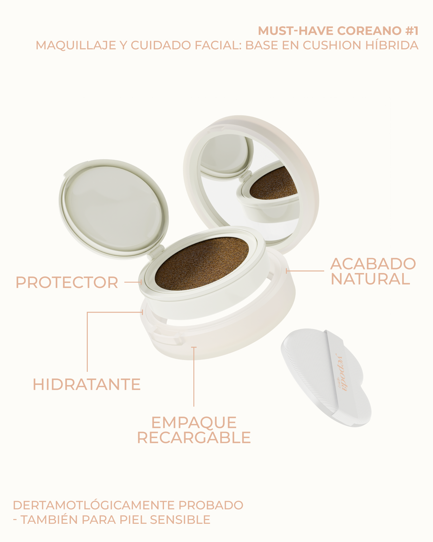 Fue sorprendente que solo con el test me llegara justo el color que me va bien. Muy comoda la aplicación y muy ligero en la piel.