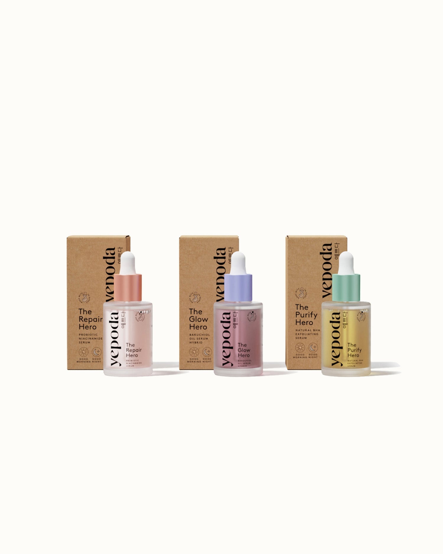 • The Mini Glow Hero: altamente eficaz como un sérum y nutritivo como un aceite. Gracias a su poderoso ingrediente Bakuchiol y a los aceites nutritivos, The Glow Hero es un eficaz héroe que retarda el envejecimiento y proporciona a su piel un brillo saludable instantáneo y duradero.