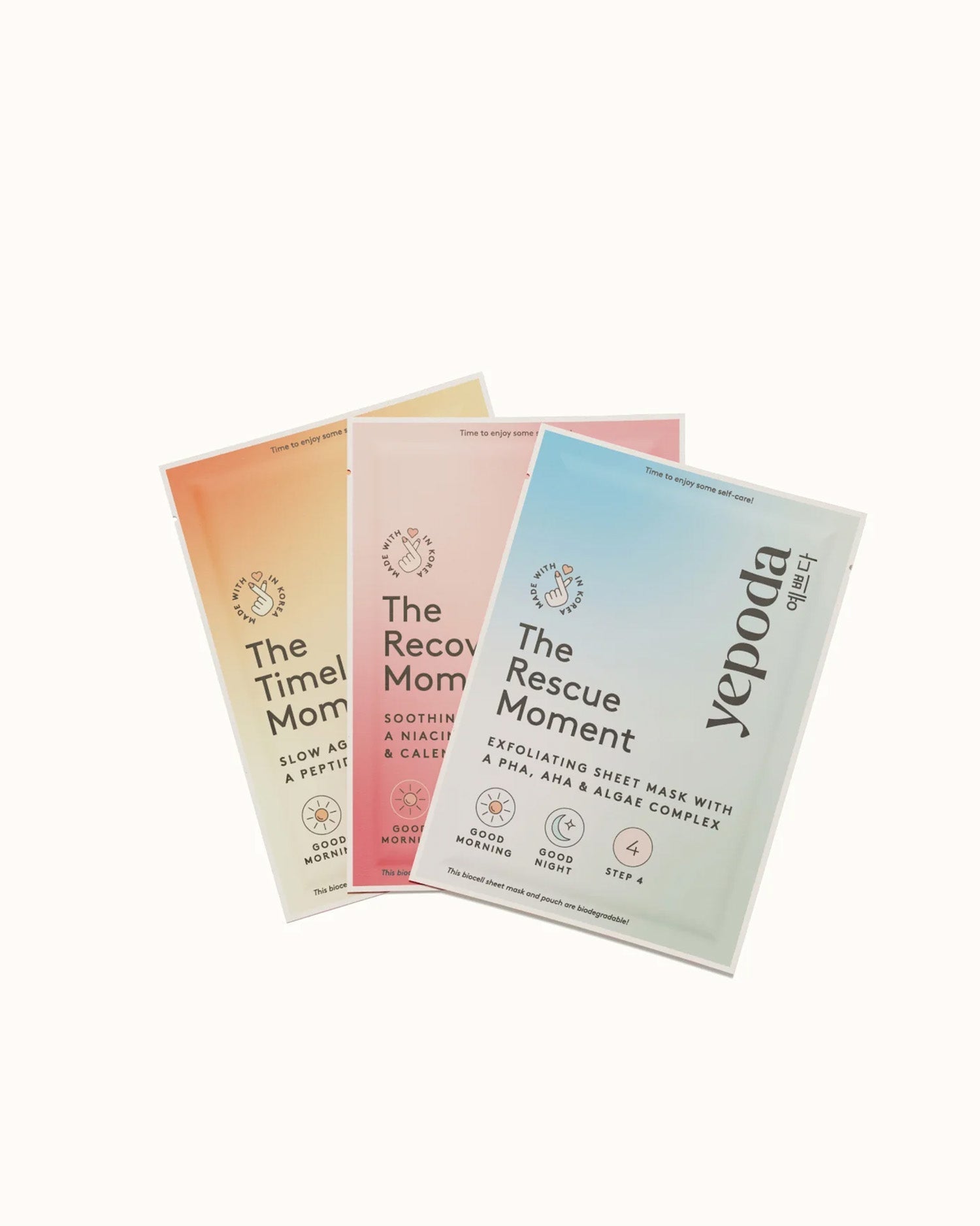 ¿Sabías que la mayoría de coreanos utilizan mascarillas faciales todos los días? Escoge el momento Yepoda que tu piel necesita hoy.