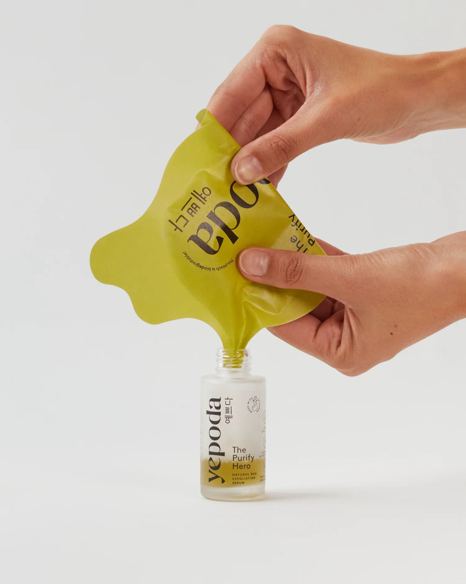 ¿Impurezas? ¡El Purify Hero es la solución! Nuestro sérum clarificante tipo peeling con extracto de corteza de sauce -una alternativa natural al ácido salicílico- exfolia la piel, desobstruye los poros, estimula la renovación celular y, por lo tanto, purifica tu piel.